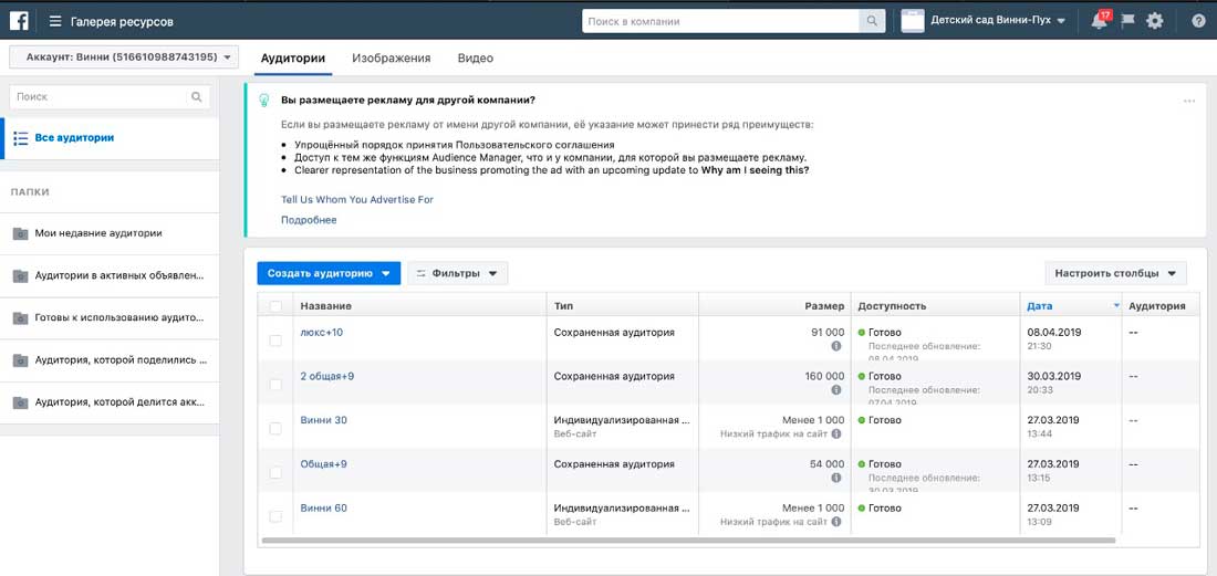 Так как стоимость пребывания ребенка в саду начинается от 35000 руб., нам нужно было показать рекламу только тем родителям, которые могут себе это позволить. Интересы выбирали разные: от роскошной недвижимости до частых поездок за границу и пересекали с теми, у кого собственно есть дети от года до 5 лет.